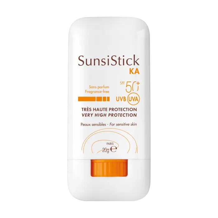 El Avene Sunsistick Ka 50+ es un stick solar diseñado específicamente para proporcionar una protección solar muy alta, ideal para pieles sensibles y propensas a la queratosis actínica. Se puede utilizar en zonas localizadas como la frente, nariz, pómulos, cabeza y dorso de las manos. Este producto cuenta con un acabado transparente que permite una fácil aplicación incluso en las áreas más delicadas, garantizando una alta tolerancia cutánea bajo control dermatológico y un efecto de larga duración. Además, su sistema de filtros es estable y eficaz, ofreciendo una amplia protección UVB-UVA de larga duración. Entre sus componentes se encuentran un dúo de antioxidantes, Tialidina y provitamina E (pretocoferil), que proporcionan una protección celular inmediata y completa contra el estrés oxidativo. También incluye Vederine™, un activo adicional que aumenta la expresión de los receptores de vitamina D y refuerza la barrera cutánea. Este stick es resistente al agua y no contiene perfume.