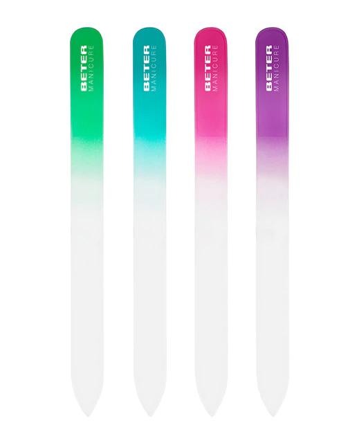 La Beter Lima de uñas de vidrio templado previene que las uñas se astillen y se abran por capas. Para su aplicación, lima siguiendo la forma natural de las uñas y siempre en la misma dirección. Si deseas obtener una punta cuadrada, mantén la lima en posición perpendicular y recta. Si prefieres un acabado redondeado u ovalado, coloca la lima en un ángulo por debajo del borde libre de la uña y lima bien las esquinas.
