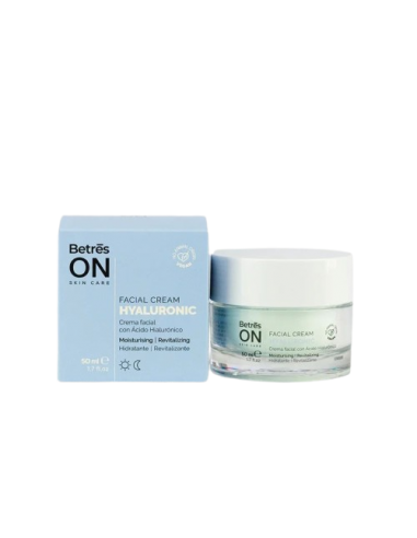 Aplicar Betres On Crema Ácido Hialurónico Facial sobre la piel limpia y seca del rostro y cuello. Masajear suavemente hasta su total absorción. Se recomienda su uso tanto en la mañana como en la noche para obtener mejores resultados. Esta crema no solo hidrata, sino que también ayuda a proteger la barrera cutánea, dejándola visiblemente más radiante y saludable.Instrucciones