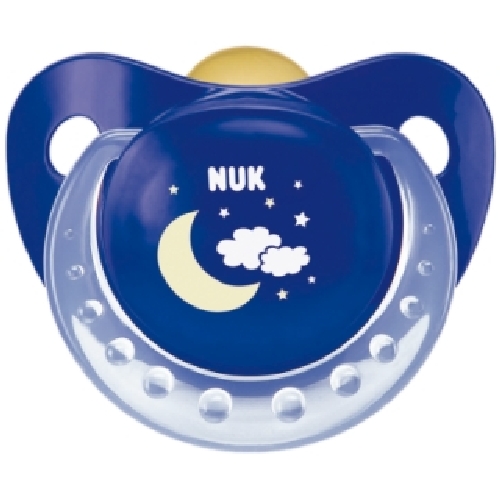 Los chupetes Noche y Día de NUK cuentan con una anilla plana integrada, lo que garantiza que el bebé no pierda el chupete mientras duerme.