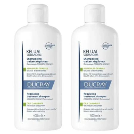Ducray Kelual Squanorm Champú Caspa Grasa Duplo 2x400ml, tratamiento eficaz que elimina la caspa grasa y calma el cuero cabelludo.