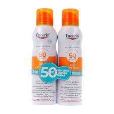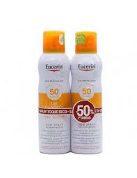 Características principales del spray solar SPF50 toque seco de Eucerin.