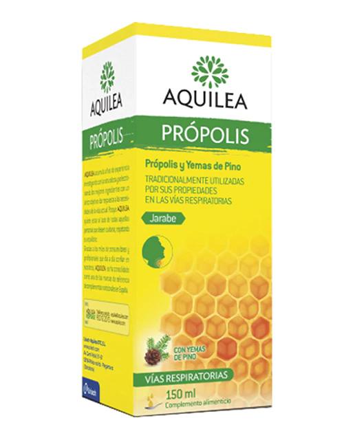 El Jarabe Própolis Aquilea calma las vías respiratorias y mejora las defensas naturales. El própolis es una sustancia natural con propiedades balsámicas y antisépticas. El sauce (Salix alba L.) actúa como analgésico y antiinflamatorio. El llantén (Plantago major L.) y el saúco (Sambucus nigra L.) aportan propiedades anticatarrales. La equinácea y la vitamina C, junto con oligoelementos como el zinc, el cobre y el manganeso, ayudan al mantenimiento de las defensas naturales. El grosellero negro (Ribes nigrum L.) posee propiedades broncodilatadoras. El tomillo es un antiséptico natural, mientras que el eucalipto (Eucalyptus globulus) y la menta (Mentha piperita L.) tienen efectos balsámicos y antisépticos.