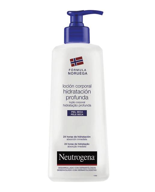 La Loción Corporal Hidratación Profunda Piel Seca es la solución eficaz para una piel seca, ya que, desde la primera aplicación, la piel queda tersa, suave y con una agradable sensación de bienestar. Su poder único: la Fórmula Noruega, probada clínicamente para penetrar en profundidad y aportar a tu piel una hidratación óptima durante 24 horas, allí donde es más necesario. La glicerina, la parafina y un complejo de azúcares de origen vegetal (xilitol) hidratan la piel. La vitamina E (acetato de tocoferol) la protege de las agresiones externas. Desde la primera aplicación y durante 24 horas, tu piel está tersa, suave y con sensación de bienestar. Día tras día, sentirás tu piel con una hidratación duradera, saludable y radiante. Suavemente perfumada, su textura untuosa se funde instantáneamente en la piel sin dejar sensación grasa, permitiendo que te vistas inmediatamente después de aplicártela. La Loción Corporal Hidratación Profunda tiene, además, una alta cosmeticidad y una textura no grasa, penetrante y fundente que facilita vestirse sin esperar a que se absorba. Para hacer su uso más fresco y agradable, cuenta con un perfume muy ligero con notas verdes y frutales.