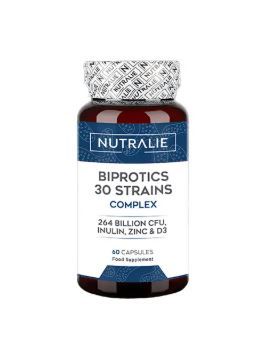 Nutralie Biprotics 30 Cepas Complex es un complemento alimenticio diseñado para ofrecer un soporte integral a tu microbiota intestinal.