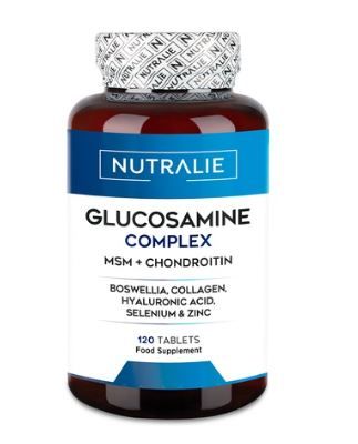 Glucosamina Complex de Nutralie contiene 1000 mg de Glucosamina por dosis diaria. Además, la fórmula natural contiene MSM (metilsulfonilmetano), condroitina, ácidos boswélicos, colágeno, ácido hialurónico, selenio y zinc, complementando una fórmula que tiene efectos beneficiosos para huesos y articulaciones.