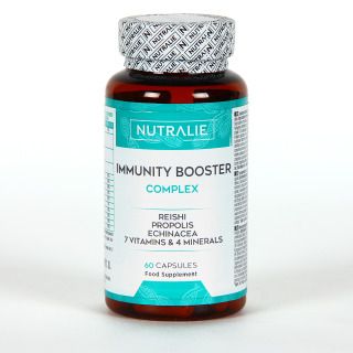Nutralie Inmunity Booster Complex es un complemento nutricional que fortalece el sistema inmunológico y a la protección de las defensas, además de aportar energía y protegerse frente al daño oxidativo. Fórmula Best in One contiene hasta 14 activos, 7 vitaminas y 4 minerales que se combinan con extractos naturales de reishi, própolis y equinácea para actuar en sinergia y beneficiar al organismo.