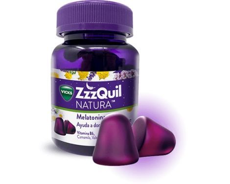 ZzzQuil Natura Melatonina es un suplemento que aprovecha las ventajas de la melatonina, de la vitamina B6 y de extractos florales, recomendado para el logro de un descanso tranquilo y relajado. Está libre de ingredientes que puedan crear adicción o inestabilidad emocional a largo plazo. Contiene una combinación especial de manzanilla, lavanda y valeriana. Junto con la melatonina, hormona que propicia el ciclo natural del sueño, interviene en el ritmo circadiano, acortando el tiempo que se requiere para quedarse dormido. El resultado es un mejor descanso nocturno. Puede ayudar a gozar de un sueño profundo de al menos 6 horas, que es el periodo mínimo que necesita el cuerpo y la mente para descansar totalmente y a diario. Este suplemento para dormir está recomendado para personas que sufran trastornos ocasionales de sueño. Es ideal para mujeres y hombres que presenten despertares nocturnos, insomnio o dormir intranquilo.